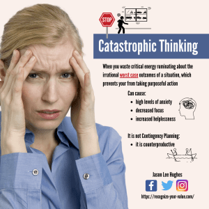 Catastrophic Thinking: When you waste critical energy ruminating about the irrational worst case outcomes of a situation, which prevents your from taking purposeful action.